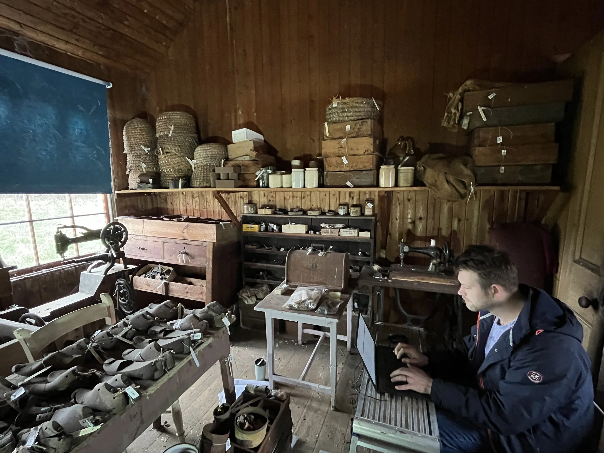 Earlier this year, my colleague Brandon Hamer and I travelled North to undertake a condition assessment of objects contained within the Ballogie Souter’s Workshop, in Aberdeenshire. The shop belonged to James Merchant, a Souter, which is a Scottish and Northern English term for a cobbler or shoemaker, who lived and worked in Ballogie. Merchants’ shop, which has remained largely untouched since his death in 1941, contains a fascinating array of tools and materials related to shoemaking, as well as a number of items relating to everyday life, giving a unique snapshot into life in the early 1900’s.